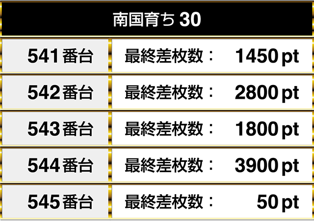10台設置の『南国育ち30』は、3900ptを含めて5台が連なってプラスpt!