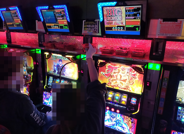 遊技を満喫しているようなプレイヤーが多く、ひときわ盛り上がっていたのが『パチスロ北斗の拳 天昇』!