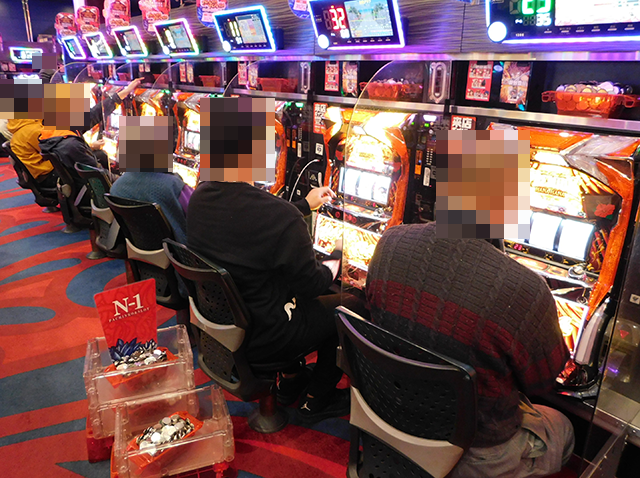 プレイヤーたちはイキイキとレバーを叩き、ボーナスタイプならではのシンプルなおもしろさを堪能している様子。