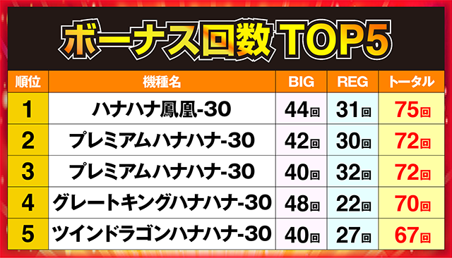 5台のうち4台のボーナス回数が70回以上というハイレベルなランキング!
