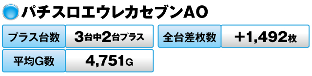 3台中2台がプラスで全台差枚数は+1,492枚だった。