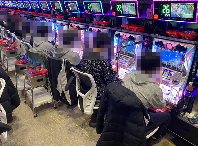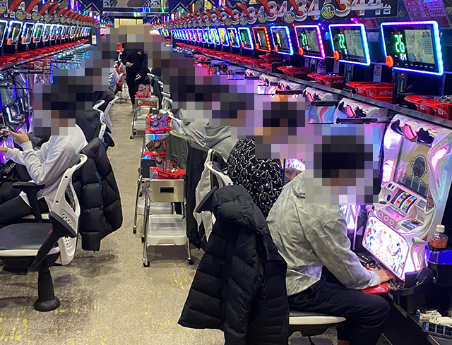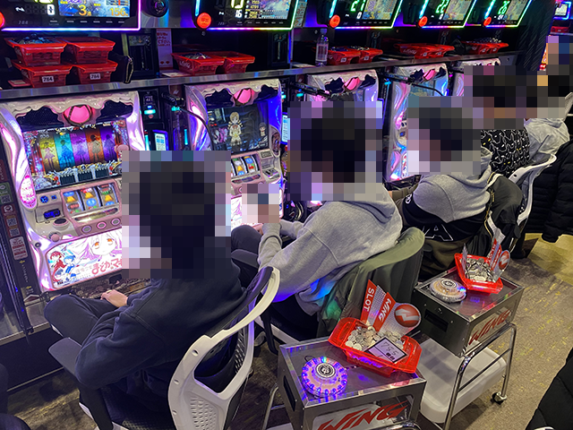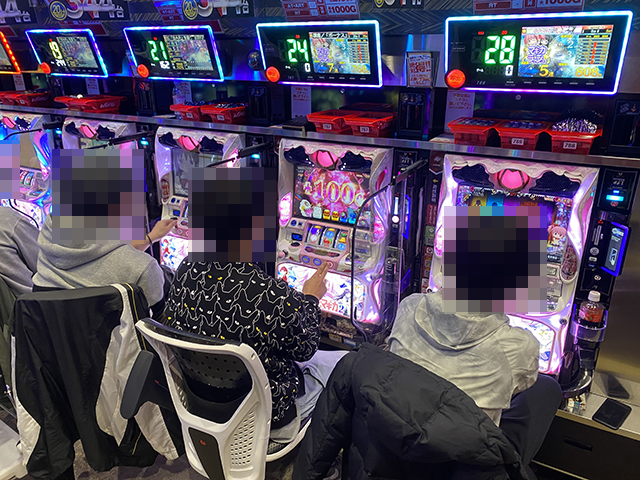 設置されている6台すべてが埋まっていることにくわえて、笑顔で遊技をおこなうプレイヤーたちの姿にも注目をした。