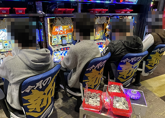 パチスロをみると、新旧を問わずにさまざまな機種が好評。遊技を満喫しているといった姿が多く、にぎわいに包まれていた。