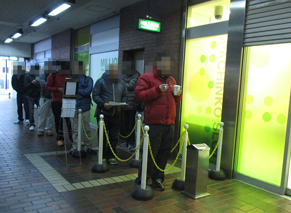 開店時の動向も前日と似ており、20円パチスロでは「秘宝伝~伝説への道~」、4円パチンコでは「CRまわるんパチンコ大海物語3」が注目されていた。