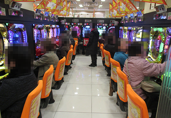 パチンコ・パチスロともに大きく活気づいており、華やかな光景が広がっていた。