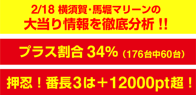 2月18日の「横須賀・馬堀マリーン」は、176台中60台がプラス。