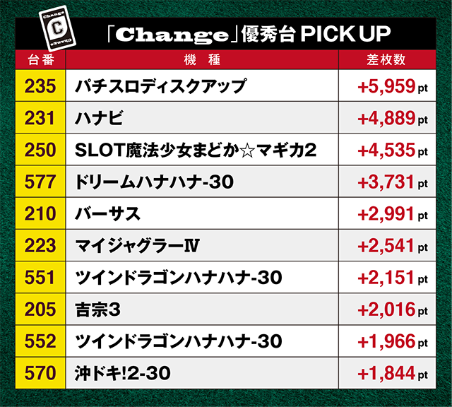 231番台の「ハナビ」と250番台の「SLOT魔法少女まどか☆マギカ2」も+4000ptを上回る好記録!!