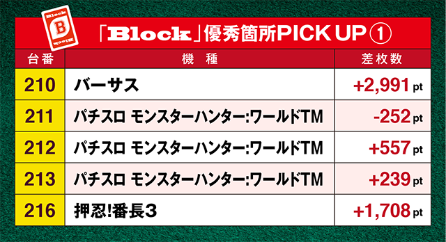 +2991ptを記録した210番台と+557pt記録した212番台も飛び飛びでプラスであった。