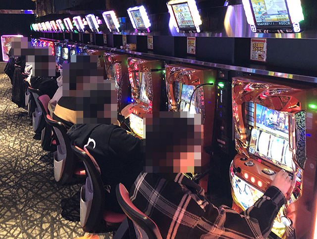 ボーナスタイプが設置されているシマでは、「ハナビ通」の142番台から「マイジャグラーⅣ」の150番台までの9台が1台飛ばしでプラスptとなった。