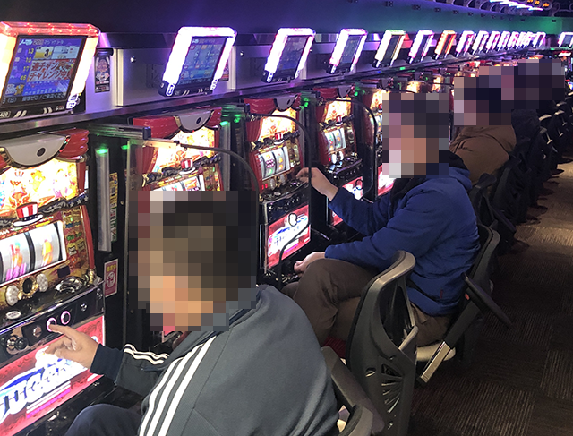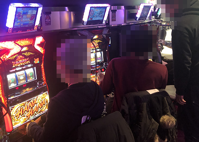 並びで設置された「吉宗3」と「押忍!番長3」の420番台から424番台までの5台が1台飛ばしでプラス!!