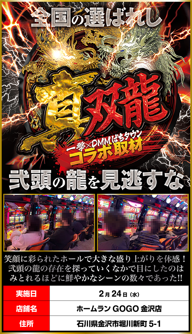 金沢駅の近くに位置する「ホームランGOGO金沢店」を舞台に「真双龍」を敢行。