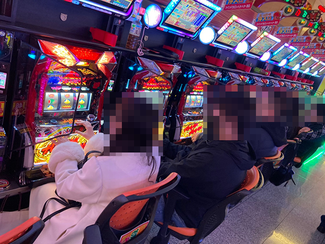 確認時は9台中8台が稼働しており、プレイヤーひとりひとりが笑顔で遊技をおこなっていた。