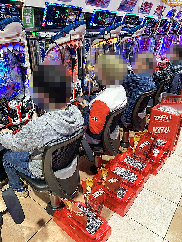 14時半ごろの4円パチンコでは「ぱちんこCR真・北斗無双」や「P JAWS3 SHARK PANIC〜深淵〜」、「Pひぐらしのなく頃に〜瞬〜」が盛況で、プレイヤーの嬉しそうな表情を多数確認している。