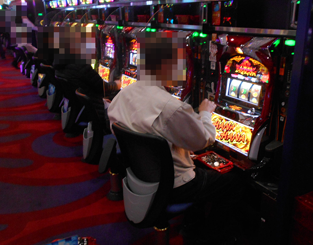 活気のあるシーンは「ハナハナ鳳凰-30」でもみられ、プレイヤーたちは機種の魅力を味わえている様子。うれしそうな表情をみせていたことも印象に残っている。