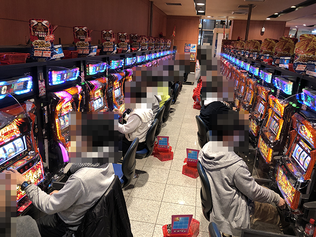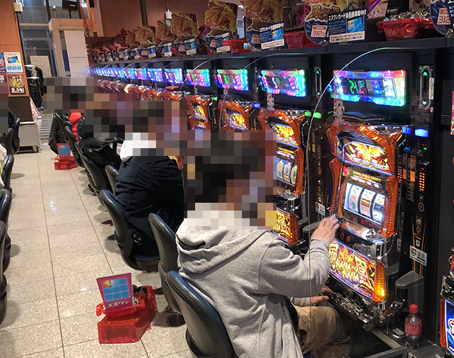 アーケード街に位置しているホールであり、パチスロには全3機種のハナハナシリーズが設置されている。
