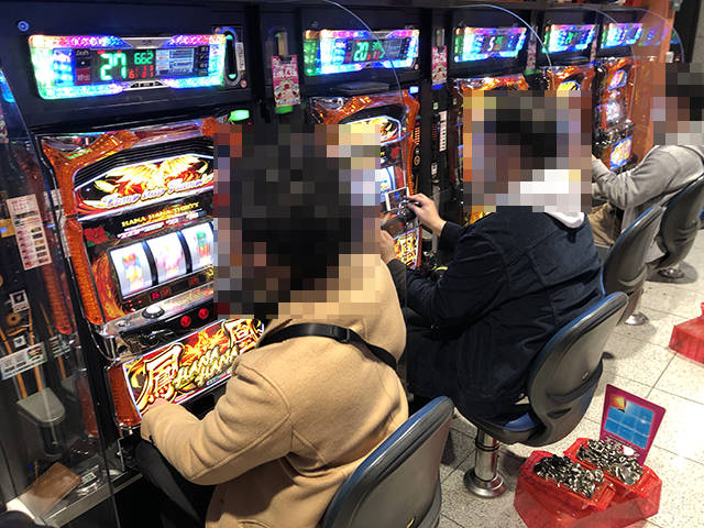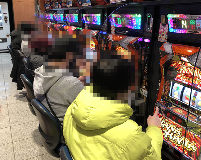 17時半を過ぎた頃には、幅広い年齢層のプレイヤーから支持されており、半数以上の台が稼働。