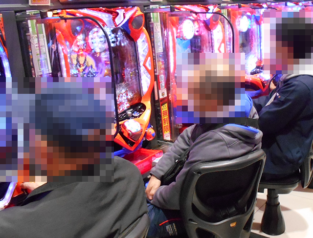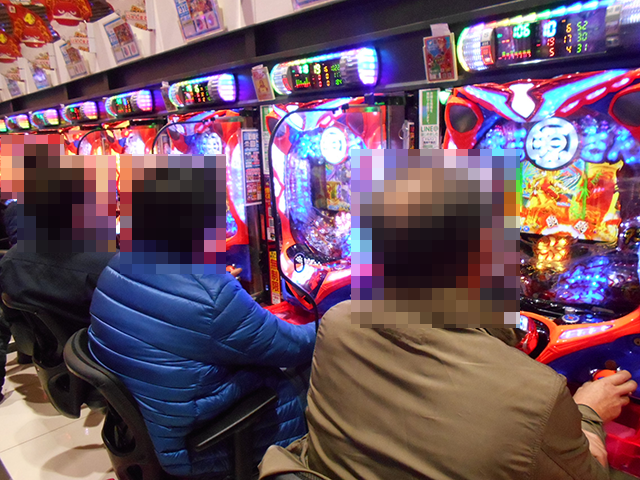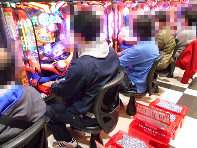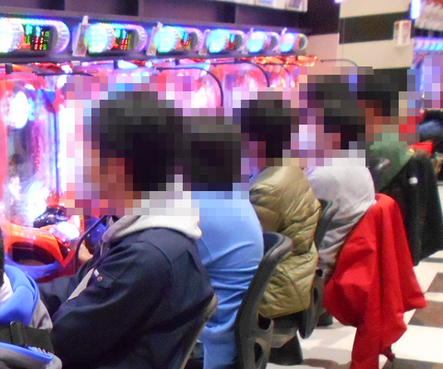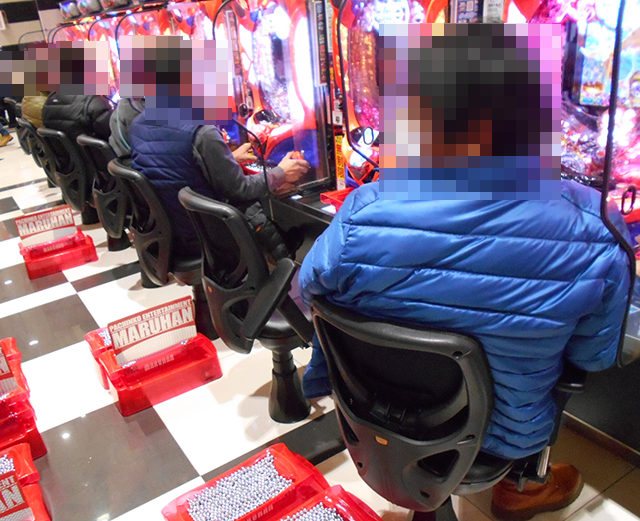 400台以上のパチンコが設置されているホール内では、大勢のプレイヤーが楽しそうに遊技をおこなっていた。