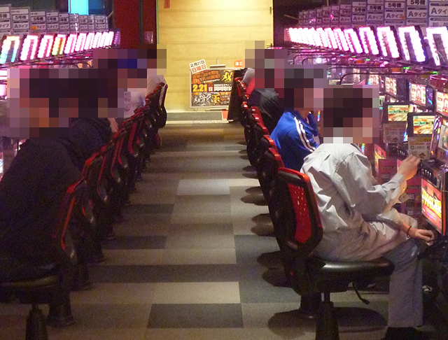 パチスロの状況をうかがうと、さまざまな機種が支持されており、各シマがにぎわいに包まれていた。