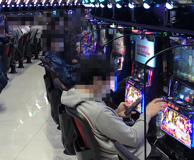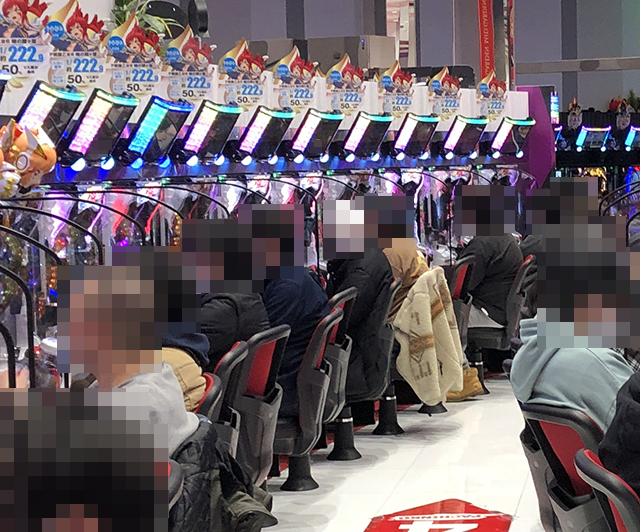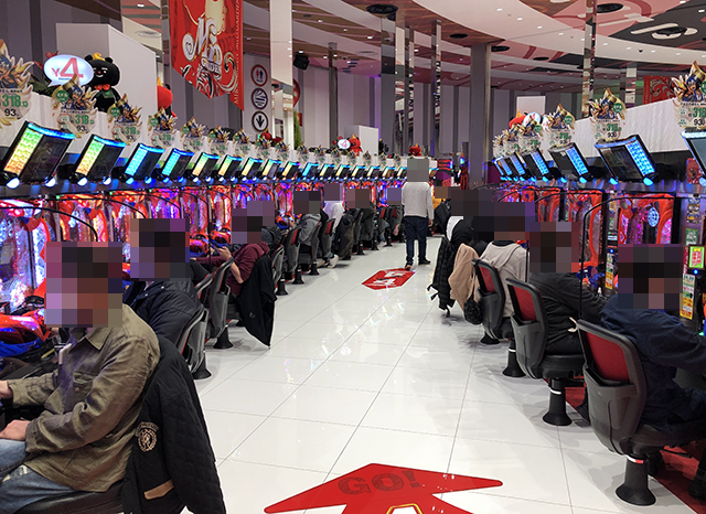 「P大工の源さん 超韋駄天」をはじめ、ホール全体に華やかな光景が広がっていた「ミッド・ガーデン堀之内店」。充実感を得られているためか、プレイヤーが楽しそうにハンドルを握っていたことも印象に残っている。