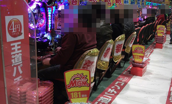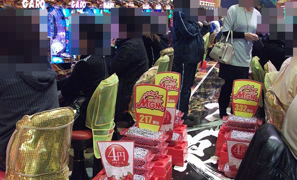16時頃の4円パチンコをみると、「CR牙狼 魔戒ノ花」がほぼ満席。