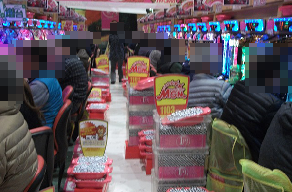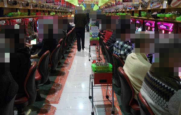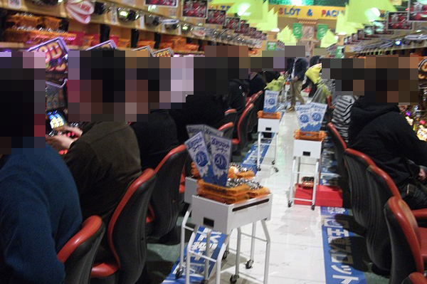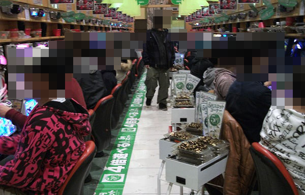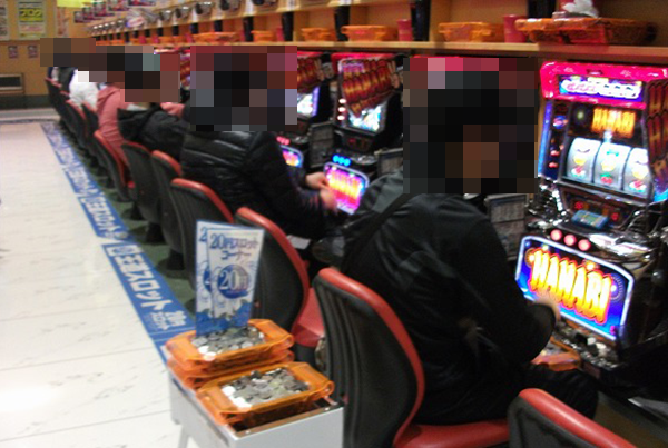 5円パチスロも、空き台がほとんど見当たらないほどに盛況。