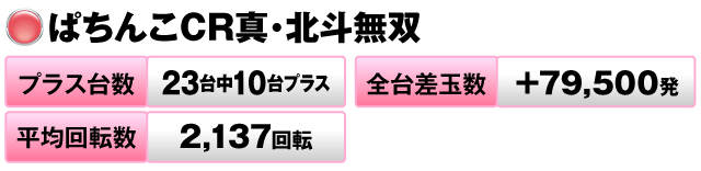 23台中10台がプラスで全台差玉数は+79,500発だった。