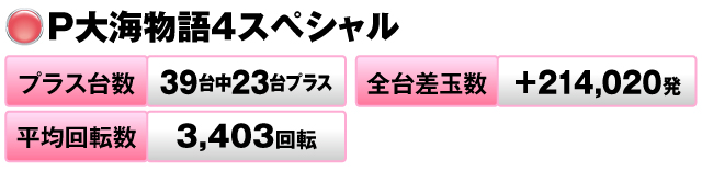 39台中23台がプラスで、全台差玉数は+214,020発だった。