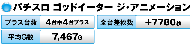 4台すべてがプラスで全台差枚数は+7,780枚だった。