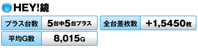 5台すべてがプラスで全台差枚数が+15,450枚、平均G数は8,015Gを記録。