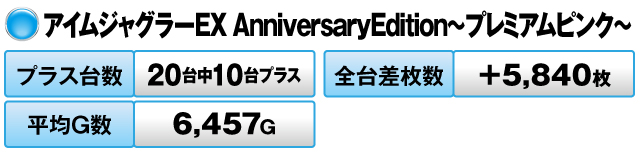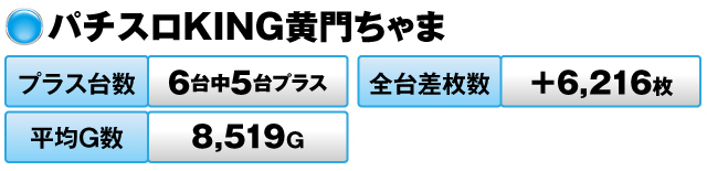 6台中5台がプラスで全台差枚数は+6,216枚をマークした。