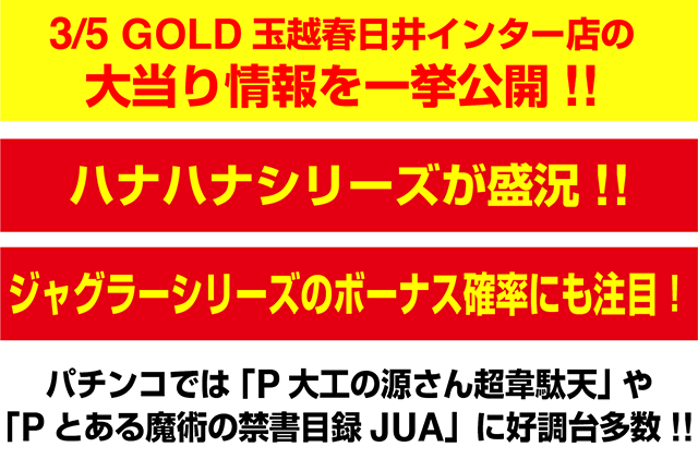 3月5日の日刊ぱちタウンは、「GOLD玉越春日井インター店」をピックアップ。