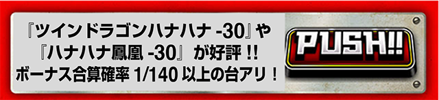 4機種あるハナハナシリーズのすべてに、ボーナス合算確率が1/140を上回る台アリ。『ツインドラゴンハナハナ-30』の83番台は、10299Gで79回のボーナスに当選した。