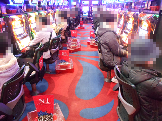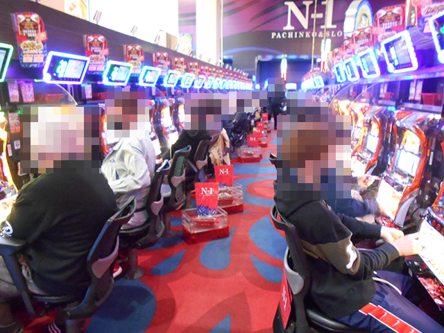 閉店時の平均ゲーム数は7000Gオーバーと、1日を通して好評。半数以上となる19台がプラスでこの日を終えた。