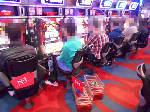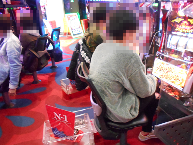 33台設置されている「プレミアムハナハナ-30」をみると、楽しそうに過ごしているプレイヤーが多数。