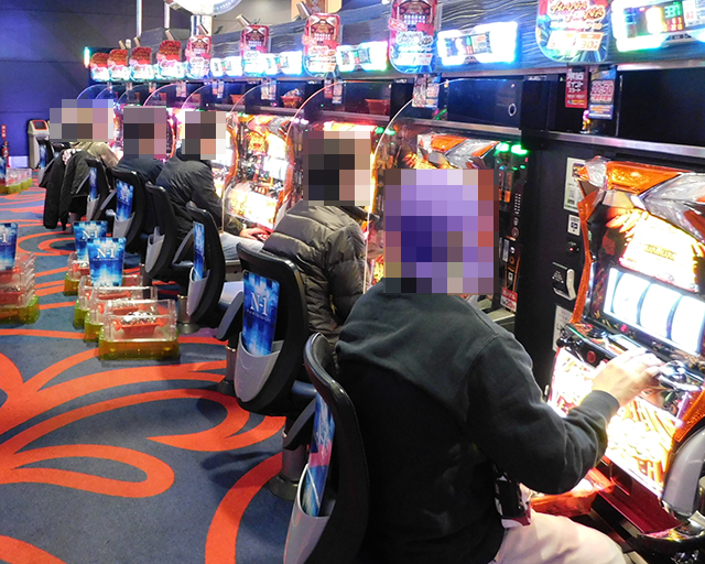 パチスロではさまざまな機種が支持されており、どのシマも大盛り上がりといった状況!