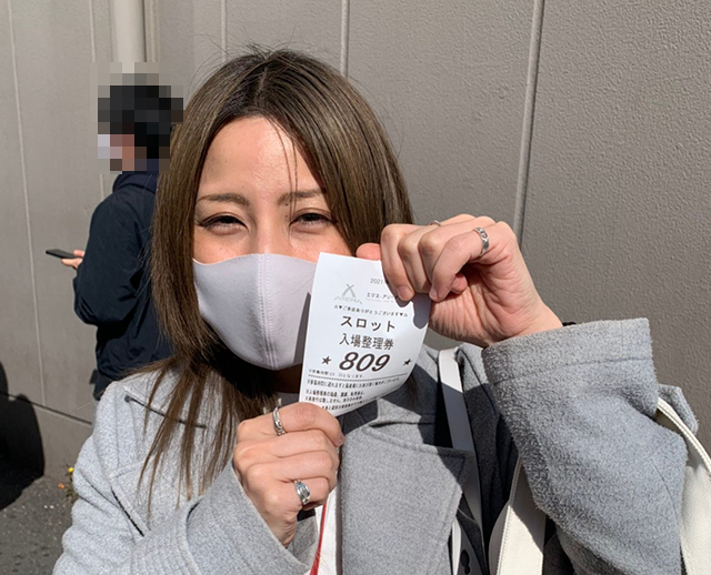 「今日は人が多くて台移動ができないだろうから、1台目で勝負が決まりそう。パチスロがダメだったらパチンコに移動する人も少なくないかも。」