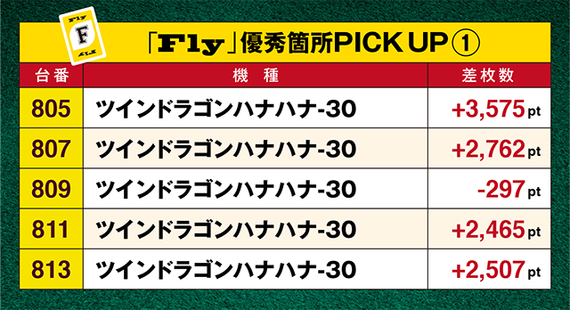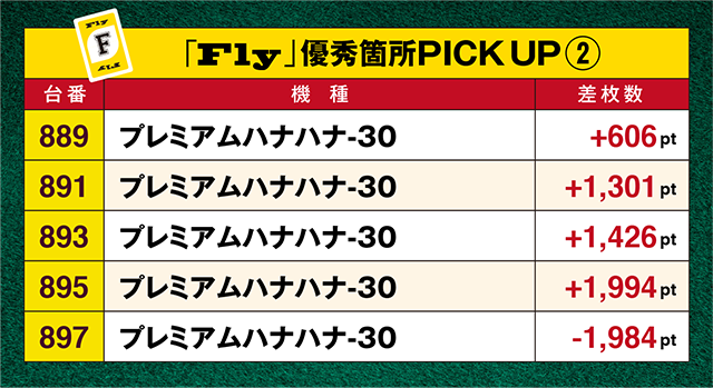 982番台も+1486ptを記録するなど、好成績を残す台が塊となってあらわれた。