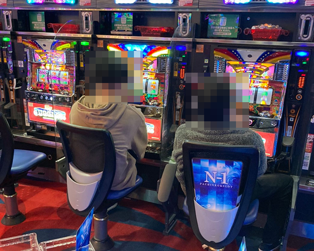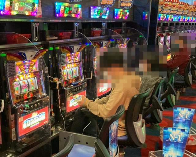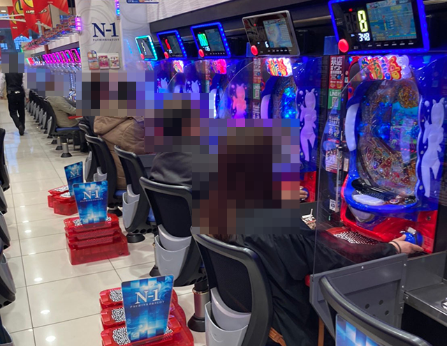 パチンコとパチスロの両方でプレイヤーが活躍をしていた「エヌワン三条店」。みどころが多く、明るいムードに包まれていた。