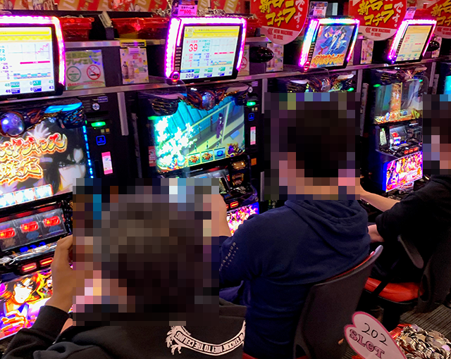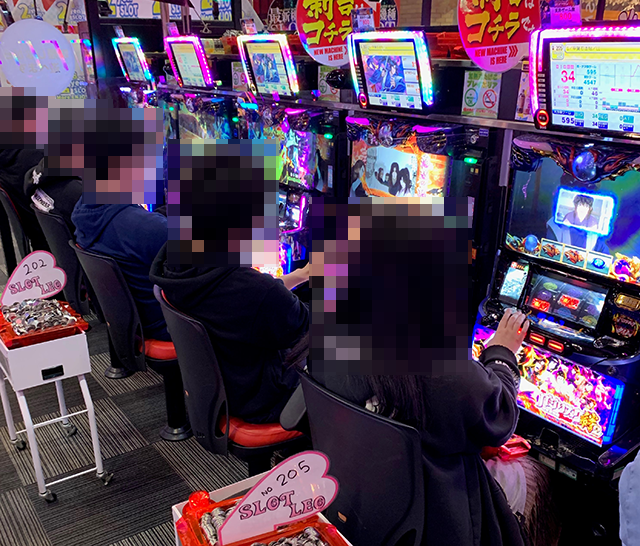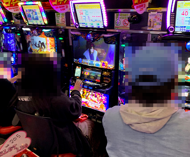 プレイヤーのイキイキとした姿も魅力的。6台すべてで笑顔がみられ、いちパチスロファンとしてうらやましく思えた。
