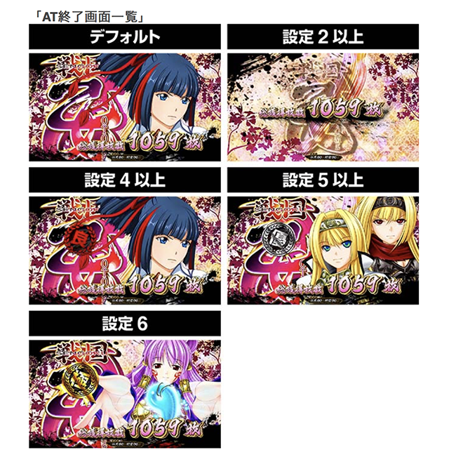 AT終了画面に設定推測要素が存在し、設定4以上濃厚画面には良、優、極スタンプが出現する。