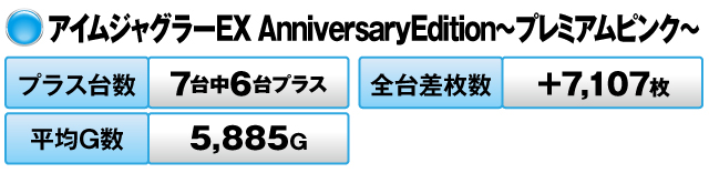 同じく、高い安定感を見せたのが『アイムジャグラーEX AnniversaryEdition〜プレミアムピンク〜』。
