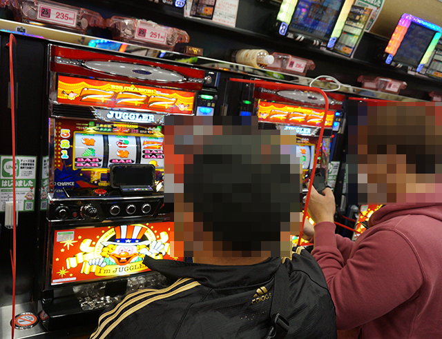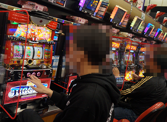 「マイジャグラーⅣ」と「アイムジャグラーEX」に笑顔のプレイヤーがズラリ!