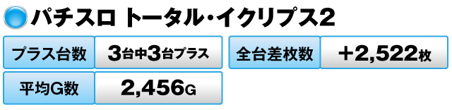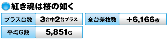 3台中2台がプラスで全台差枚数は+6,166枚だった。