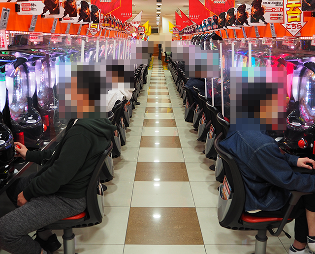 ホールに到着したのは16時を過ぎた頃。入店すると、あちこちに遊技を満喫しているようなプレイヤーの姿があった。