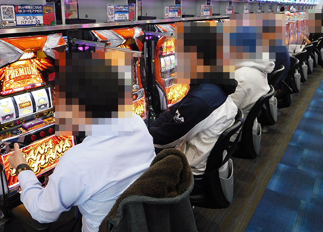 15時半頃の「プレミアムハナハナ-30」は4割ほどが埋まっており、稼働率以上に盛況。