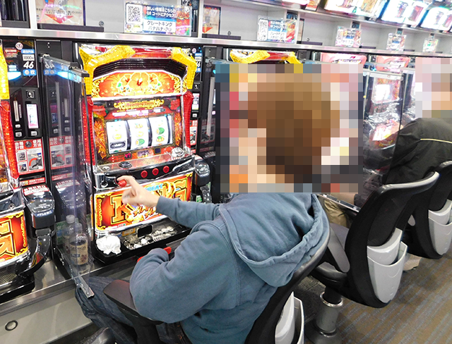 8台が設置されている「グレートキングハナハナ-30」では、3名のプレイヤーが遊技をおこなっていた。