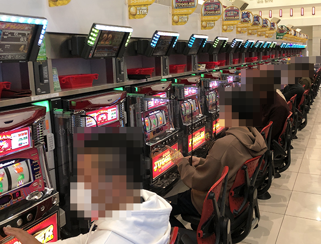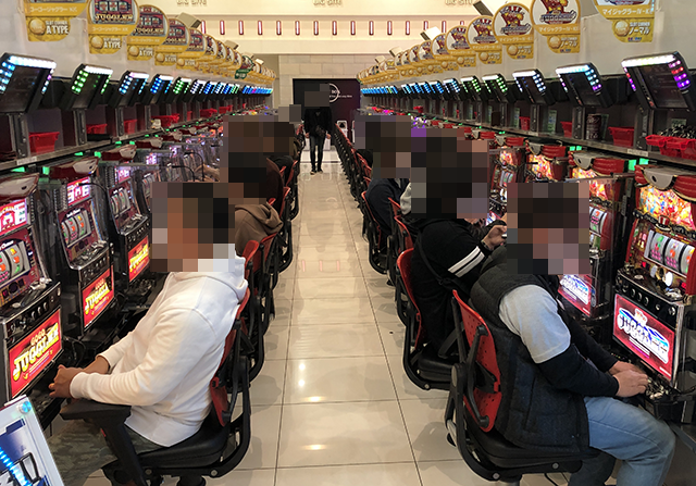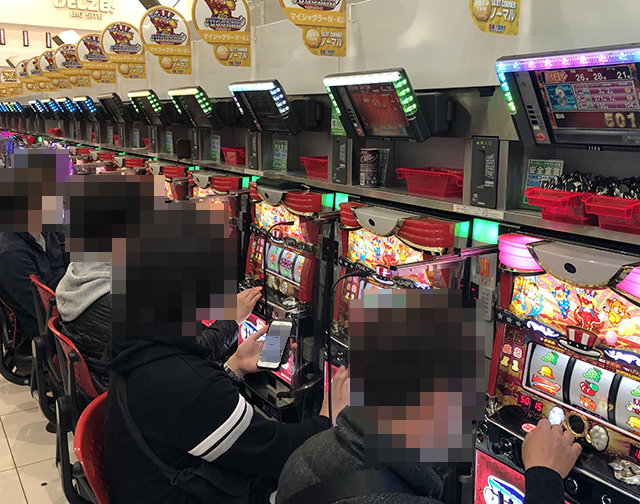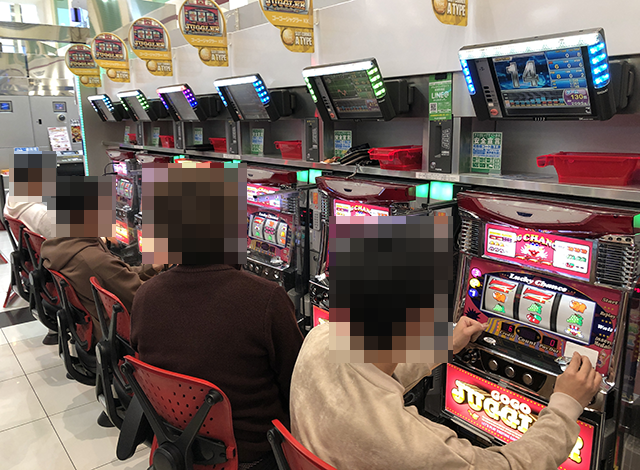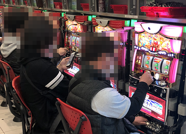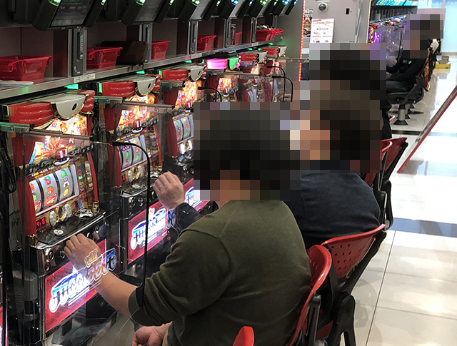 パチスロコーナーに足を踏み入れると、いくつもの場所でプレイヤーが華麗な活躍をみせていた。