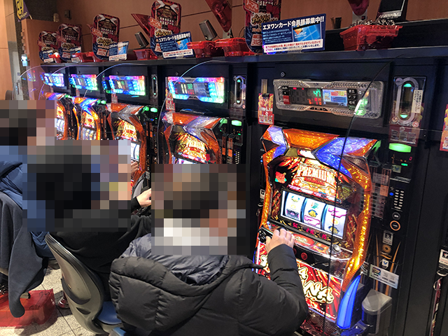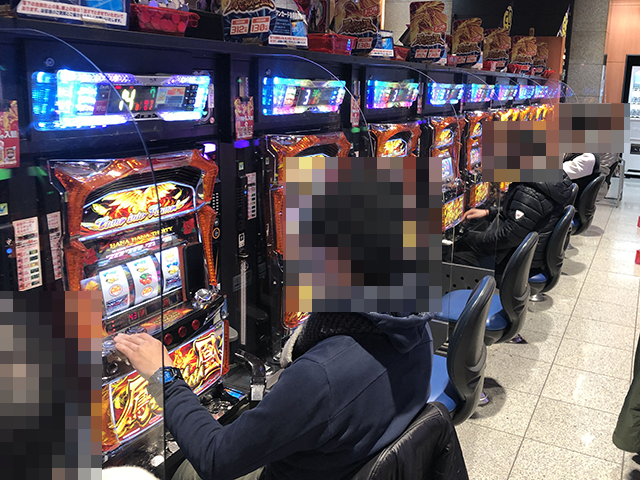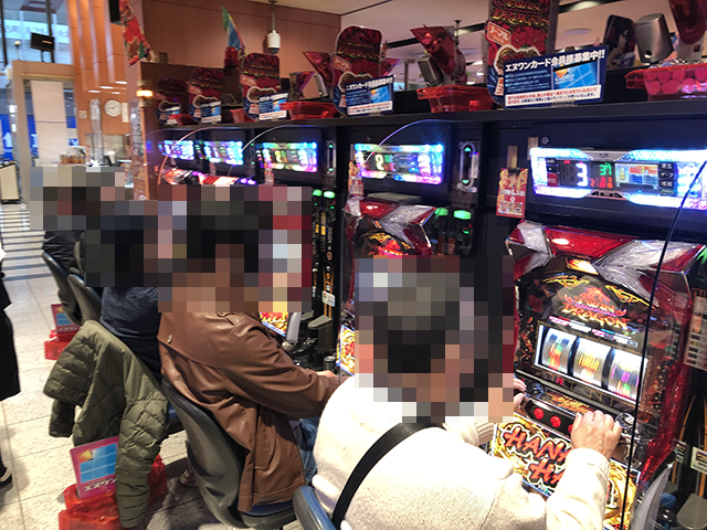 午後の「プレミアムハナハナ-30」は、7台のうち5台が稼働しているほどに人気があった。