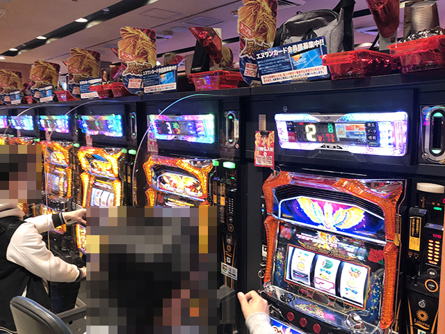 ホール内には「ハナハナ鳳凰-30」と「プレミアムハナハナ-30」、「ツインドラゴンハナハナ-30」の3機種のハナハナシリーズがあり、合計で20台が設置されている。