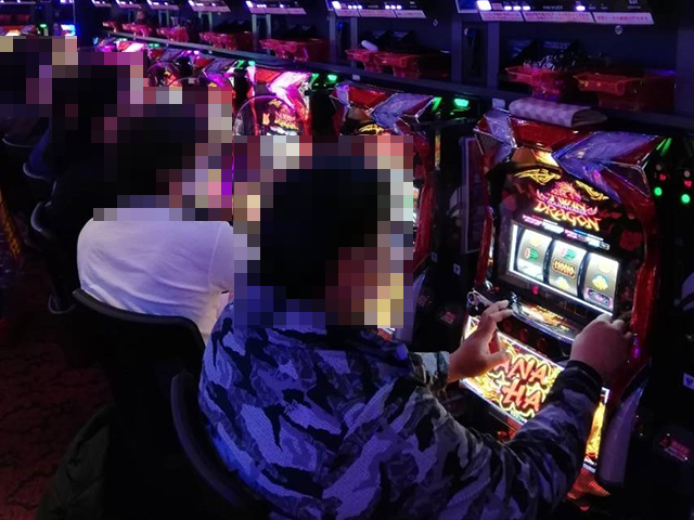 パチスロコーナーにおいて、ひときわ活気づいていたのが「ツインドラゴンハナハナ-30」。老若男女を問わずに、幅広い年齢層のプレイヤーから支持を受けていた。